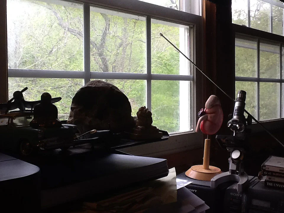 And during all seasons, today's season most definitely included, it is a view that calls for me to step away from the desk, to get outside, to take a closer look at the world the trees live in, and be reminded, as always anew, of the ways in which that world informs and expands whatever world or worlds I am engaged with at this desk.