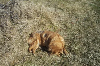 At 13, Ivy, who's never known any home but this farm, likes her naps alfresco, even on cold days (as long as the sun is out). She has always made beds and prepared dozing-spots for herself, generally on the edge of the meadow, though occasionally beneath the bower of a tree.